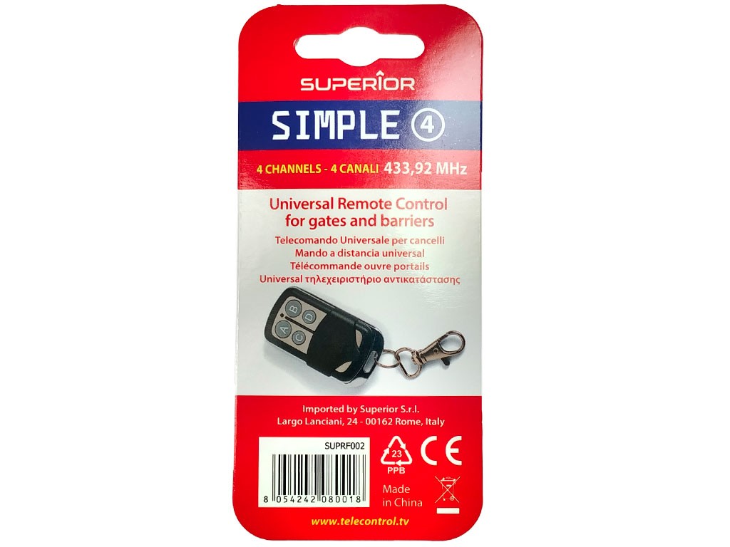 Univerzální dálkové ovládání Superior RF4 - Onpira RC-433Fix 433MHzTechnické parametry:- Možnost využít až 4 funkce (4 tlačítka)