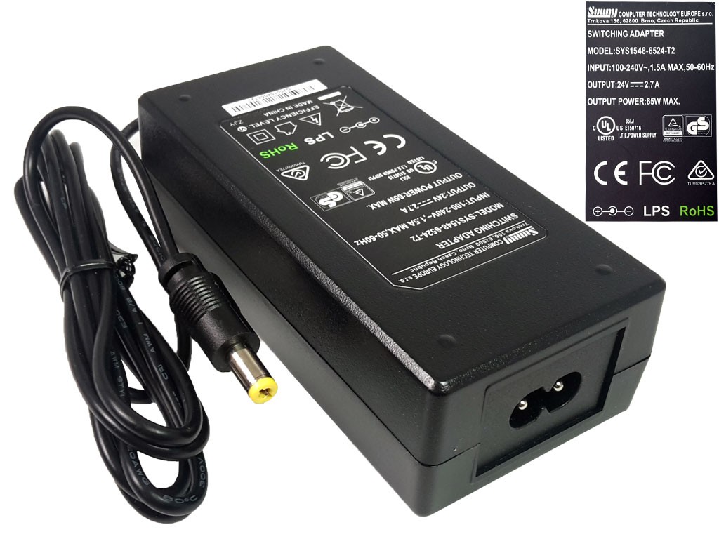 Univerzální impulzní napáječ 24V / 2.7A s konektorem 5.5x2.1mmNapájecí zdroj s moderní konstrukcí, vysokou energetickou účinností a nízkým příkonem. Splňuje nové EU normy pro síťové napáječe s nízkou spotřebou.