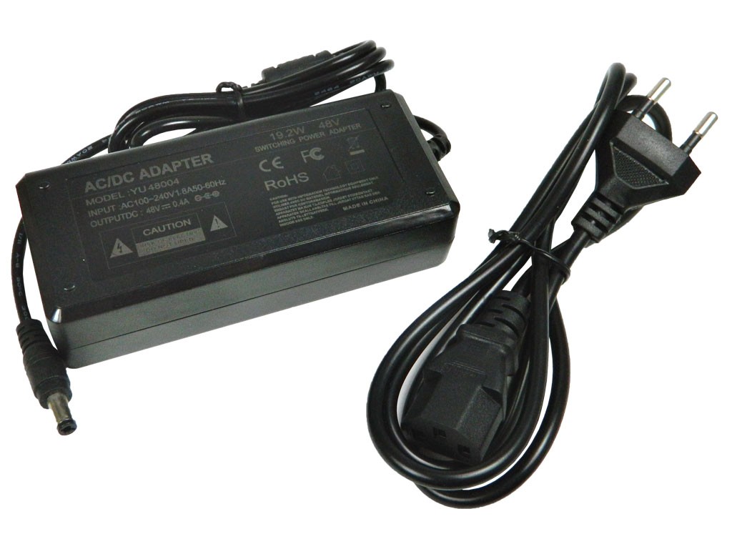 Napáječ s výstupním napětím 48V a proudem 0,4A, ideální pro široké spektrum zařízení. Tento model je schopen dodat výkon až 20W, což zajišťuje stabilní a spolehlivé napájení.