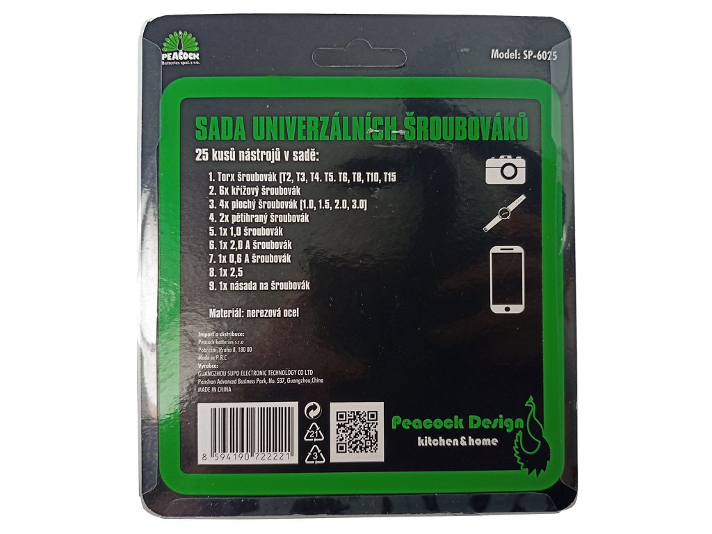 Sada obsahuje 25 kusů různých šroubováků, které pokrývají nejběžnější hlavy šroubů. Všechny nástroje jsou uloženy v praktickém pouzdře pro snadné přenášení a skladování.
