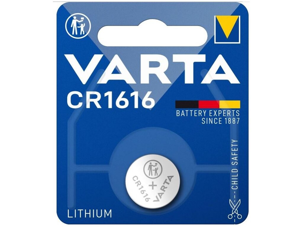 VARTA CR1616 Lithiová Baterie 3V 55mAhRozměr: 16x1,6mmLithiová knoflíková baterie VARTA CR1616 je ideální volbou pro zařízení, která vyžadují dlouhou životnost a spolehlivý výkon. Tato baterie se využívá v široké škále malých elektronických přístrojů, včetně: