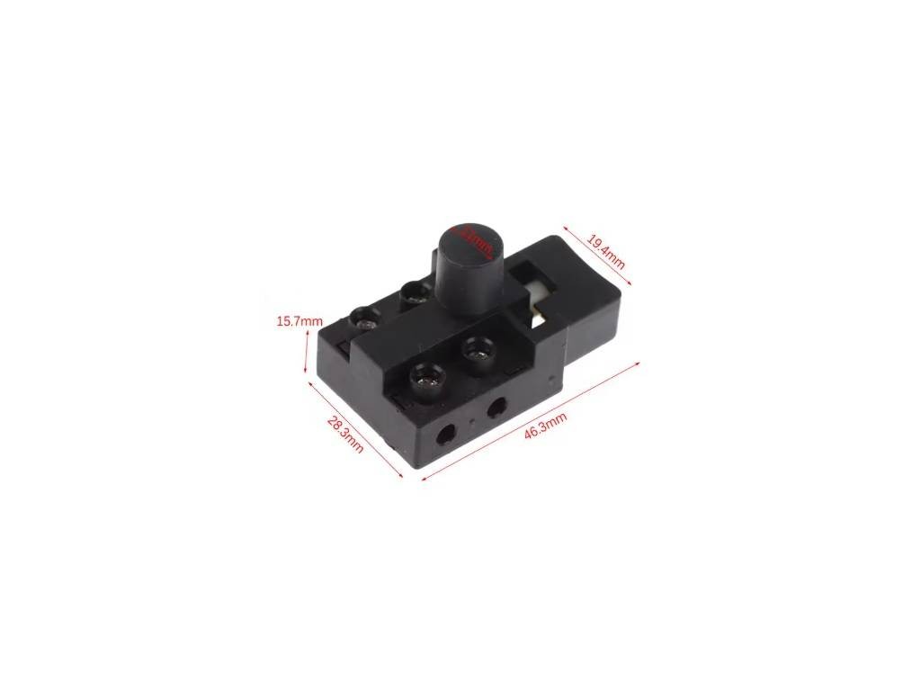 Vypínač elektrické řetězové pily Makita 5016/6018 - 651252-2Náhradní vypínač pro elektrické řetězové pily Makita 5016 a 6018. Tento spínač zajišťuje bezpečnou obsluhu pily díky zajišťovacímu bočnímu tlačítku, které brání nechtěnému spuštění. Vypínač lze aktivovat pouze po stisknutí bezpečnostního tlačítka.