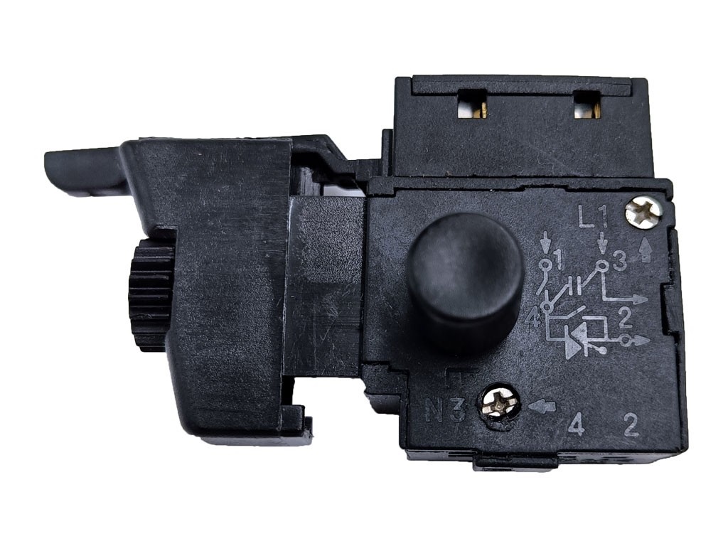 Vypínač určený pro ruční vrtačky, který umožňuje regulaci otáček a přepínání směru. Tento model je ideální pro uživatele, kteří hledají spolehlivý a efektivní spínač pro své nářadí.