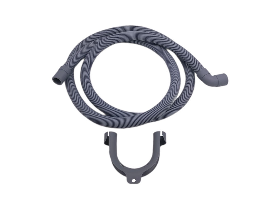 Náhradní výpustná hadice o délce 2 metry, určená pro různé typy praček a myček. Hadice má rovné a kolenní provedení, což ji činí univerzální pro instalaci.