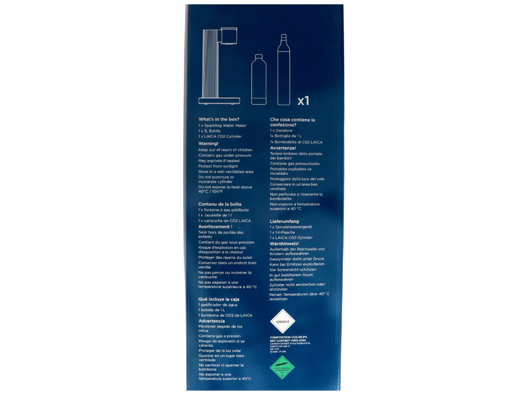Rychlé a pohodlné použití: Připravte osvěžující perlivou vodu stisknutím tlačítka. Dodává se s 1 l lahví bez obsahu PET a BPA a nevyžaduje žádné elektrické připojení.