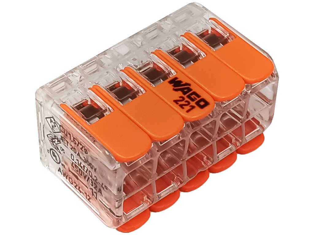 K dispozici jako 2, 3, 5 a 10 vodičové svorky. Umožňují připojit plné, vícedrátové i jemně laněné vodiče. Úspora času pro instalační techniky i výrobce přístrojů. Rychlá instalace přístrojů s vyšším příkonem. Bezpečná instalace dlouhých kabelů s větším průřezem vodičů. Upevňovací adaptér pro instalaci podle norem, možnost individuálních adaptérů.